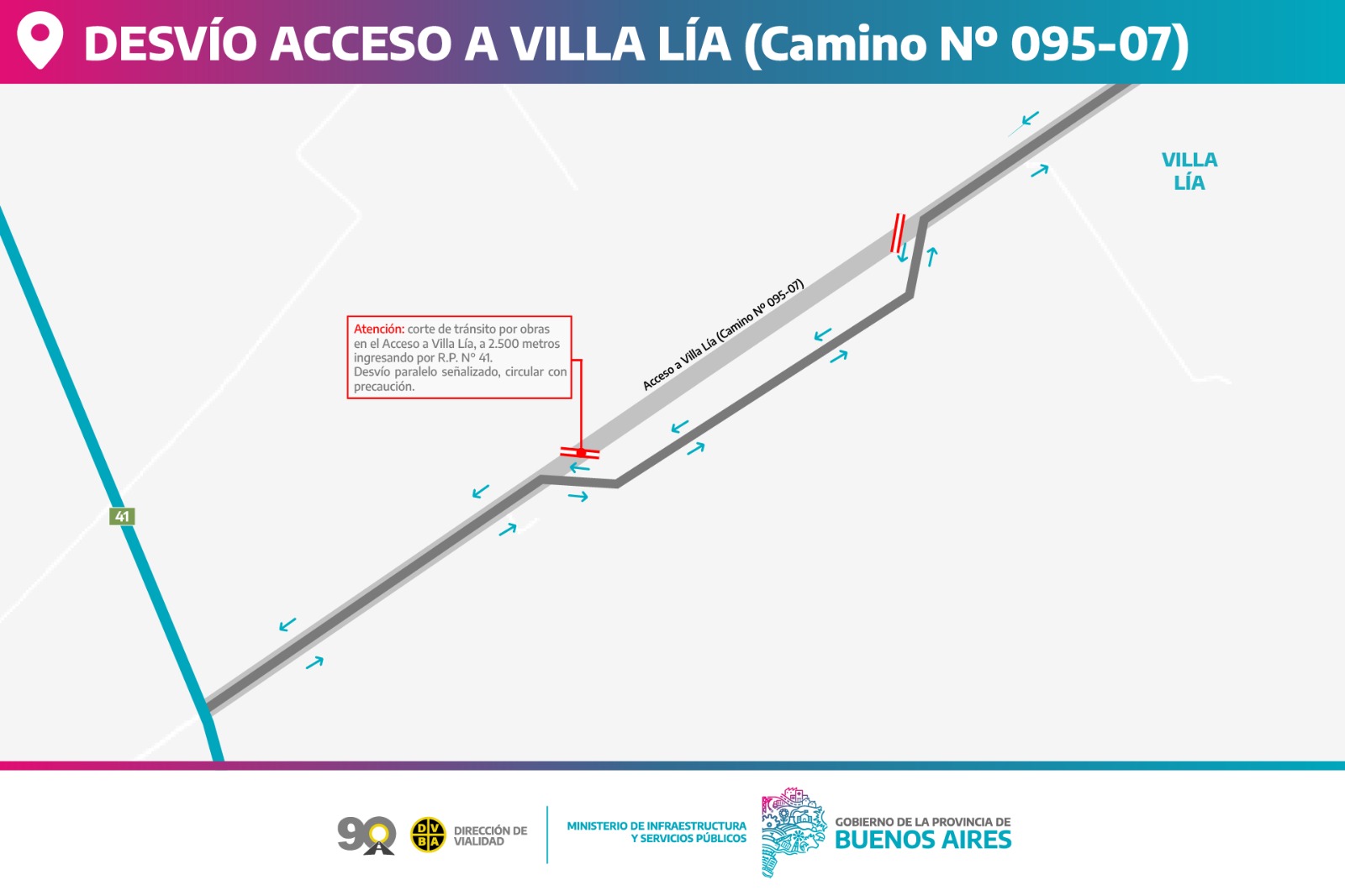 Desvío por obras en el acceso a Villa Lía