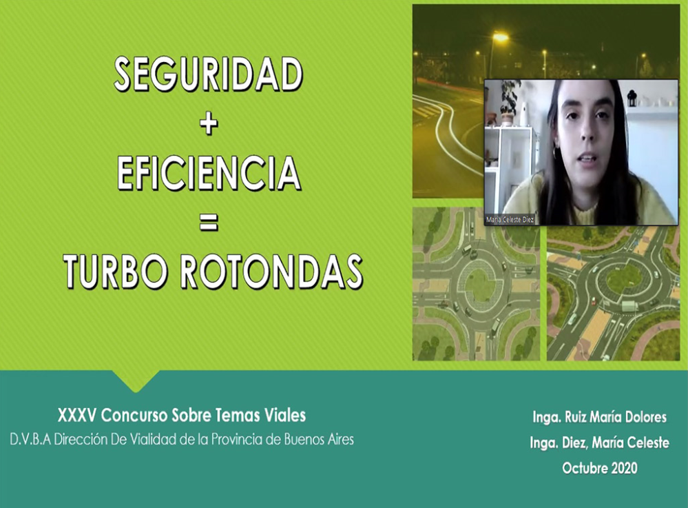 El día de ayer, las encargadas de disertar fueron las ingenieras María Celeste Diez y María Dolores Ruiz, quienes presentaron su trabajo “Seguridad + Eficiencia = Turbo”. Explicaron los beneficios de la Turbo Rotonda en distintas intersecciones canalizadas, ya sea mejorando las intersecciones rotacionales existentes o realizando un nuevo diseño. En relación a esto, enfatizaron en la posibilidad de reducir la siniestralidad de hasta un 80 %, a partir de la aplicación de las mismas.