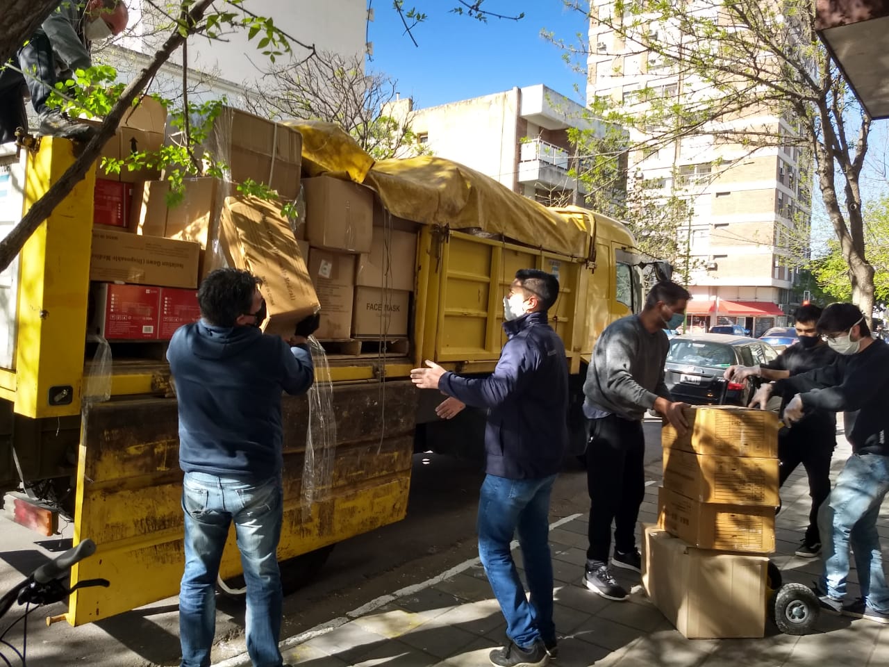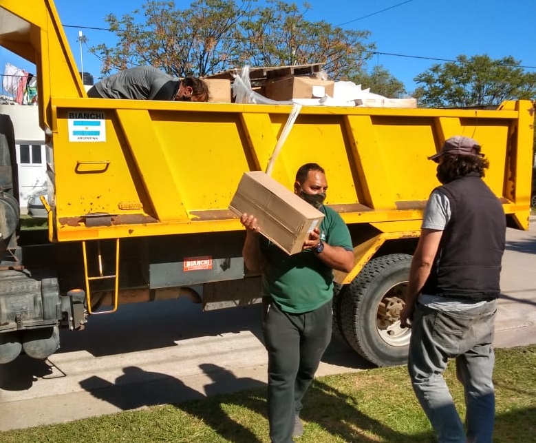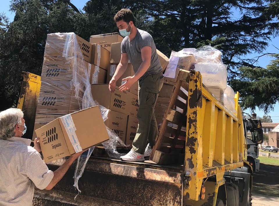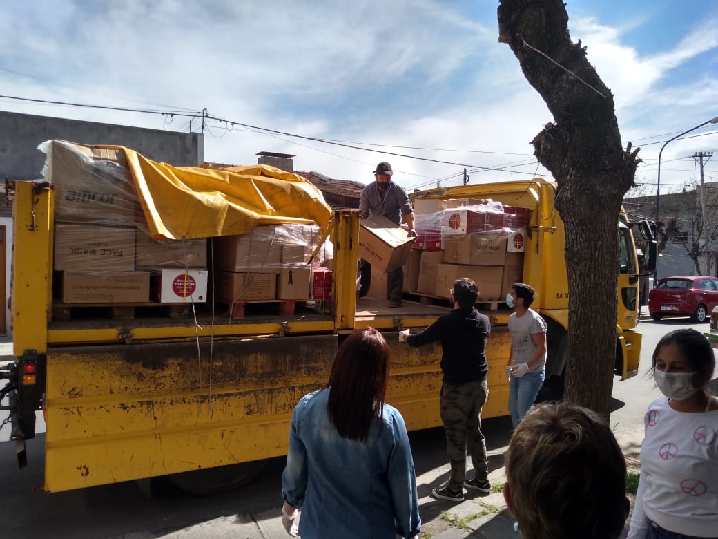 Los kits trasladados –junto al Ministerio de Salud bonaerense y la asistencia de Defensa Civil- contienen mascarillas, guantes, alcohol en gel, y mamelucos, entre otros.