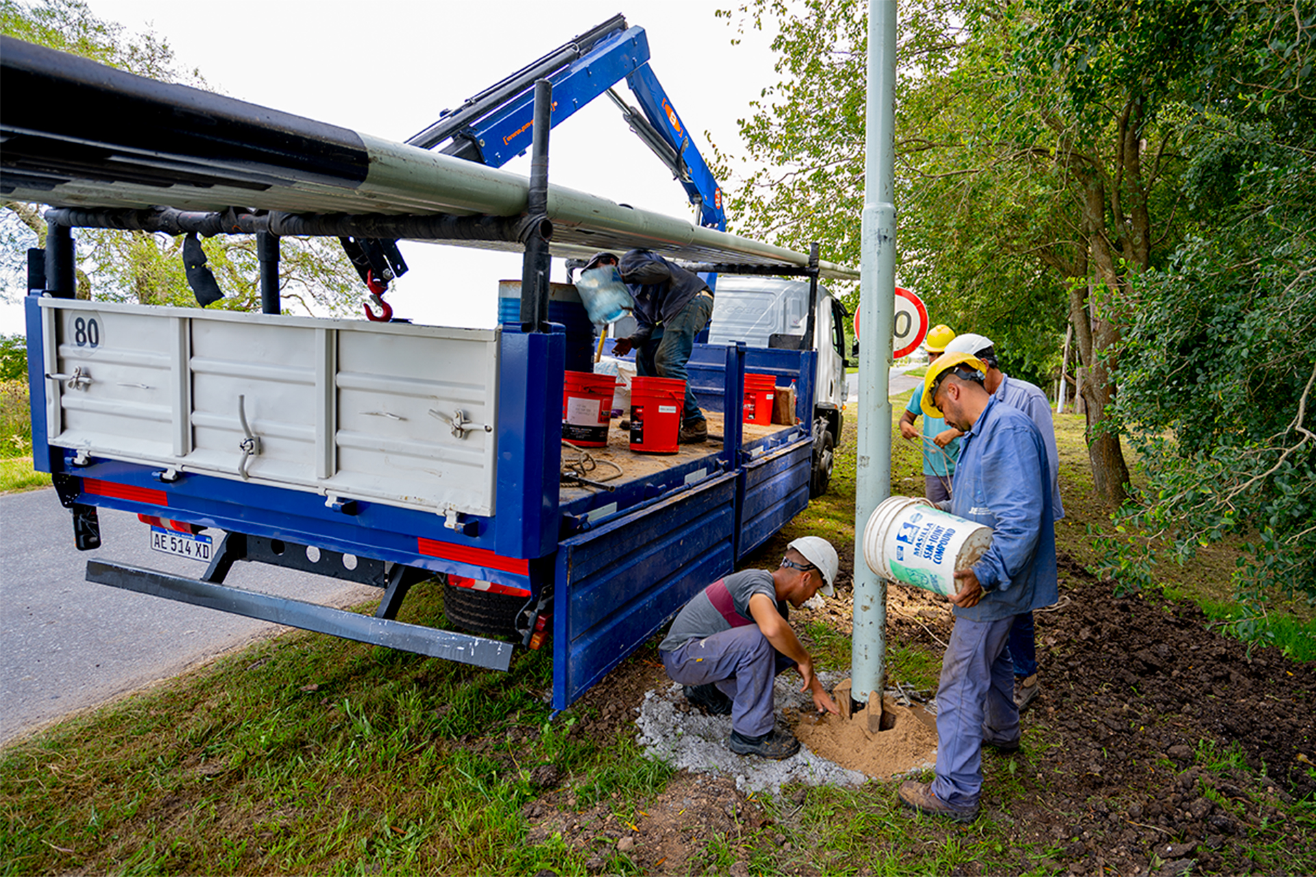 En concreto, los trabajos que se están realizando contemplan la instalación de luminarias para las localidades de Lisandro Olmos, Arturo Seguí, Poblet y Berisso. “La obra, cuya inversión es de 98 millones de pesos aproximadamente, alcanza el 85 % de avance, por lo que estamos en la etapa final de ejecución”, manifestó el titular de Vialidad, Hernán Y Zurieta, y agregó: “Las tareas consisten en la colocación de columnas en sectores que actualmente no cuentan con iluminación y, en otros, se realizará el recambio de luminarias existentes por artefactos led”.