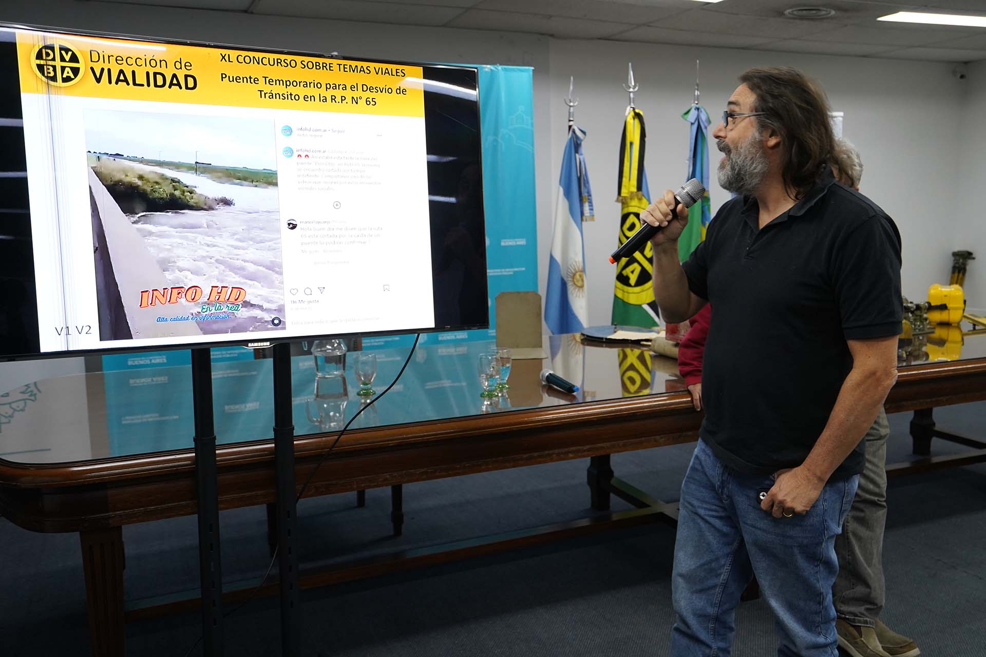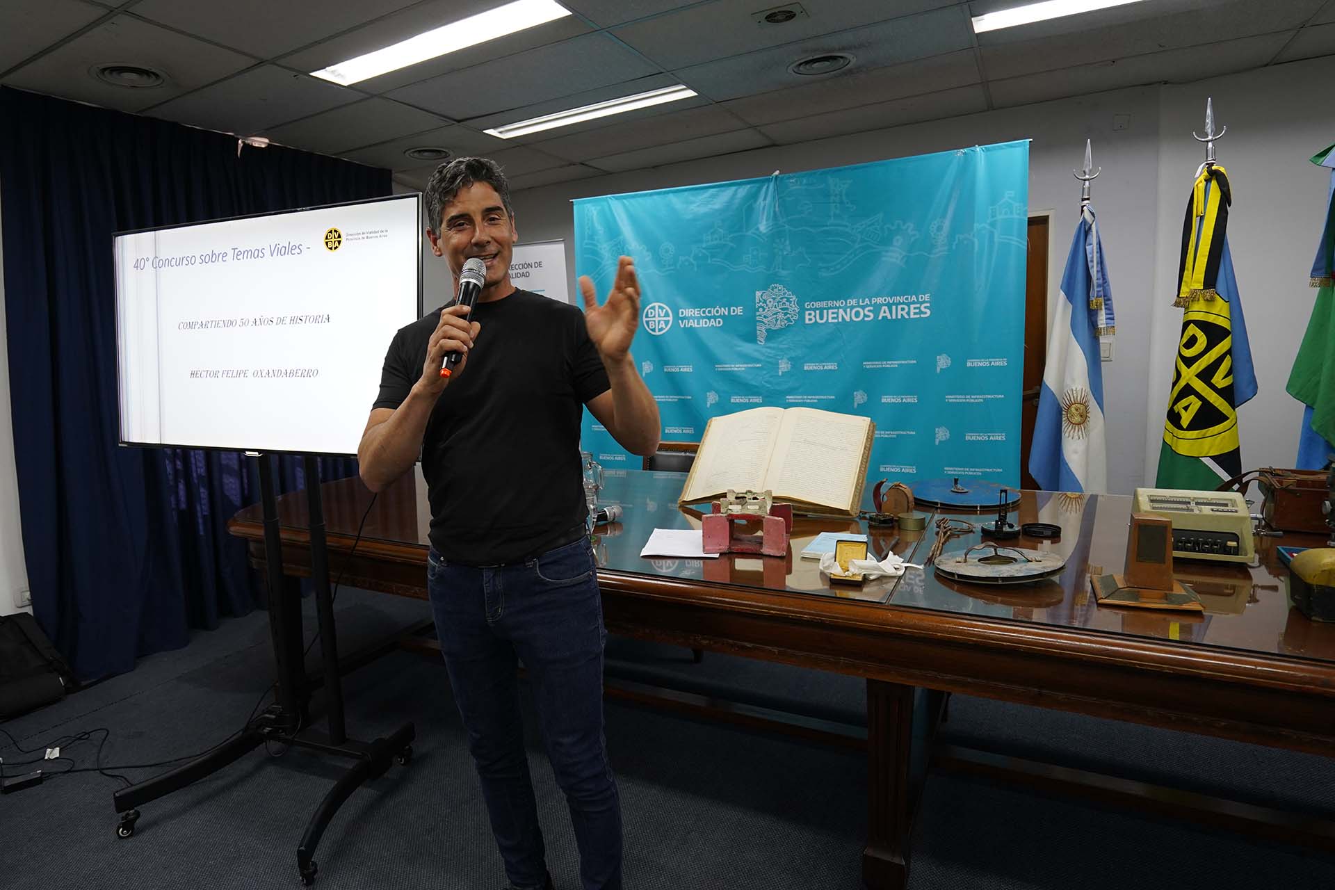Inicialmente, el actual Jefe de Zona del Departamento III Ensenada de la Dirección de Vialidad, Héctor “Vasco” Oxandaberro, brindó una charla titulada “50 años en Vialidad: memorias y aprendizajes”. Durante la misma, hizo un recorrido histórico desde su experiencia como trabajador del organismo.