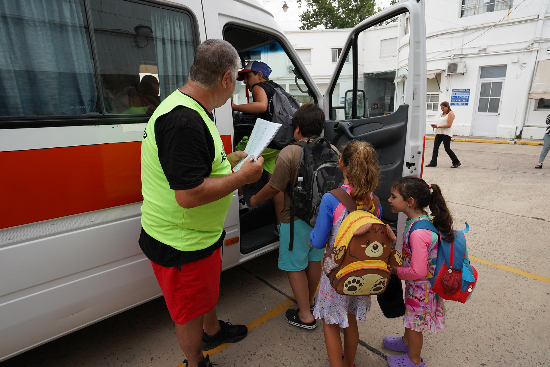 La jornada inicia a las 9hs, cuando una combi recoge a los chicos por la Dirección de Vialidad, con destino al camping de Punta Lara.