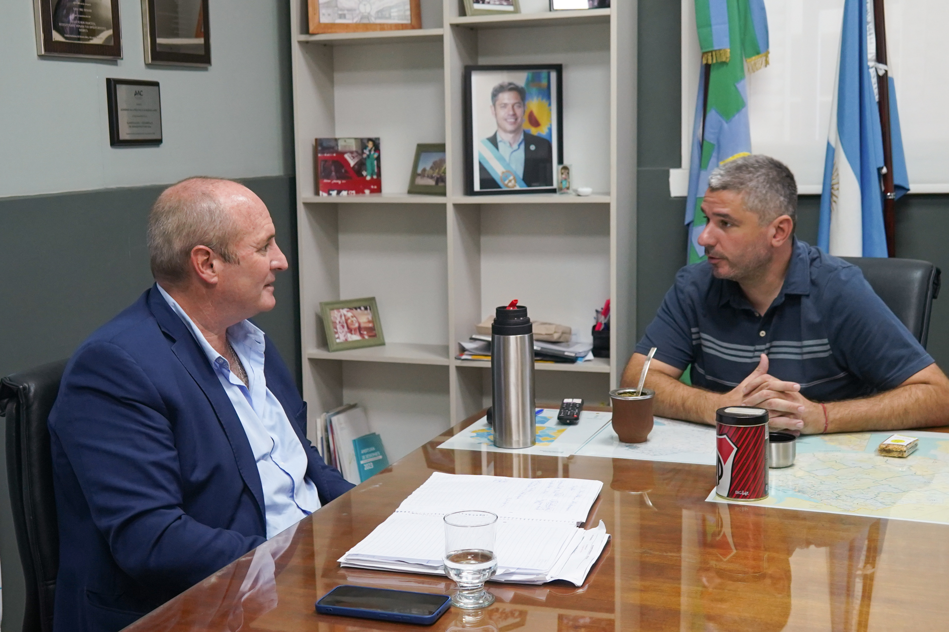 El administrador de la Dirección de Vialidad, Roberto Caggiano, mantuvo un encuentro laboral con el intendente de General Lamadrid, Martín Randazzo.