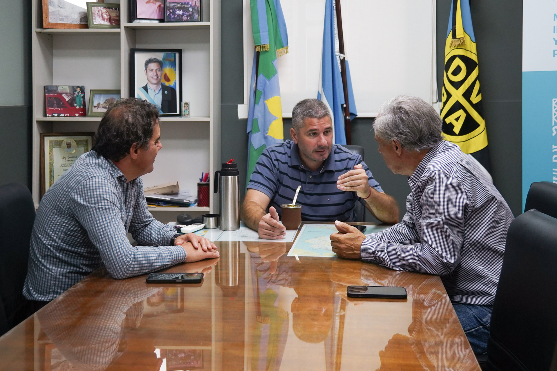 El administrador de la Dirección de Vialidad de la provincia de Buenos Aires, Roberto Caggiano, recibió en su despacho al presidente de AUBASA y al director provincial del Observatorio vial del ministerio de Transporte, José Arteaga y Facundo Coudanne, respectivamente.