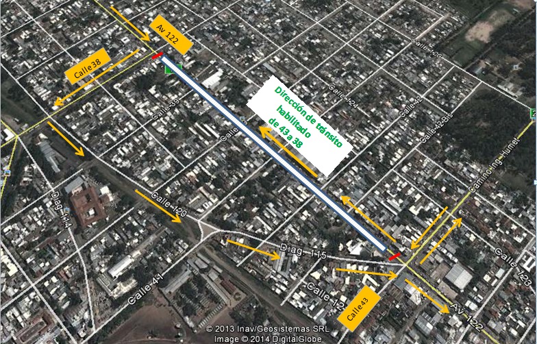 Mientras que el tránsito que va desde la calle 43 hacia Avenida 38, sentido Autopista Bs. As. – La Plata, circulará normalmente y tendrá prioridad de paso sobre la Avenida 122, mientras duren los trabajos de repavimentación.