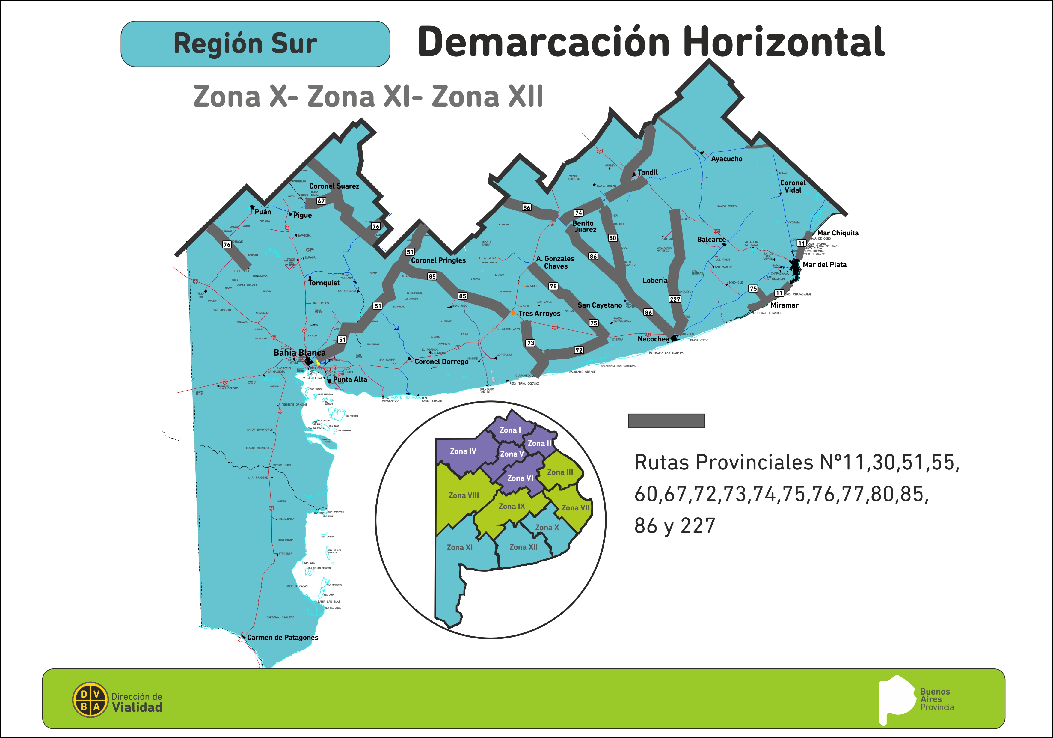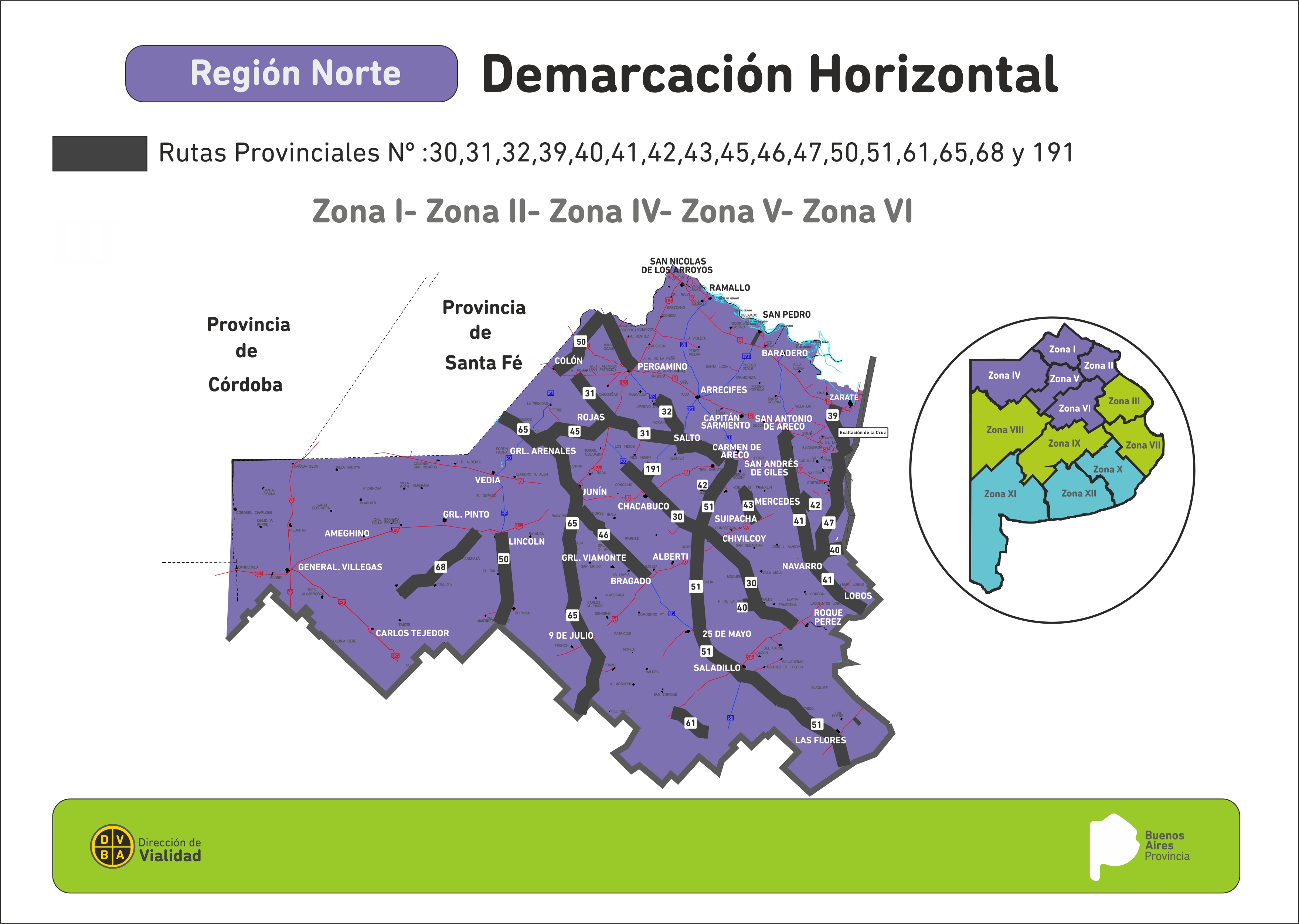 Las obras dividieron a la Provincia en tres regiones, Norte, Centro y Sur, abarcando trabajos de señalización en más de la mitad de la red vial pavimentada. Estas obras permitirán dar mayor seguridad a los usuarios que transitan los corredores provinciales.